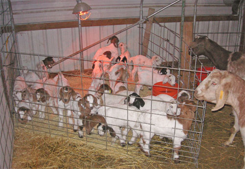 At the beginning of the ten-day run of kids, I would climb in the nursery stall with mother and baby, and lean over. Holding the baby with one hand under the belly towards the hind end, and the other hand with split fingers supporting the chest and the base of the neck; I place the kid’s nose next to a teat. The hand at the hind end then stands the kid on its feet, which frees the hand to scratch and rub the back of the baby just above the tail. This scratching stimulates the sucking reflex in the kid in the same way the mother does when she licks the baby. If everything goes according to plan, the baby starts sucking, the mother lets down her milk, and the kid receives its first dose of colostrum. Seldom is it that easy. This process often takes five to ten minutes of scratching and coaxing. At which time I am worn out from leaning over.