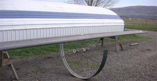 To water the grass, though, we need to assemble two more lengths of wheeline. Yesterday we pulled two lengths of pipe and two wheels out of the grass and weeds and started to put them together. These are old lines and most everything needed replacing. Some parts were on hand and others meant a trip to town. We now have everything we need (I hope) and expect to finish the lines today.