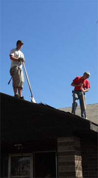 So, folk listened to the wind and worked. With roofing shovels, scaffolding, and gloves, roofing which had felt the winds nudge for over twenty-five years slide down one by eight sheathing cut from old growth trees some fifty-five years ago. Some went directly into the dumpster and far too many to the outside—which meant roofing was handled a second time before it made it to the dumpster. While folk worked on the roof, others were in the kitchen creating lunch and then supper. Others who were not roof people worked and cleaned the Friendship house. Together fourteen people transformed the landscape of the Mission. And their muscles, as the sun settled down over the Cascades from which the wind came, reminded them of their dance with wind and roof.