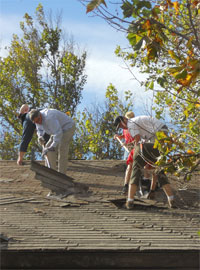 gathered for breakfast. When folk gather and begin the day together around a meal, it matters. It matters in many ways, but for Disciples, when paid close attention, meals bring people together in deep community. More than, “what are we doing today?” or “when will materials arrive?,” the meal leads folks to remembering the day is much more than tearing off a roof. There is something generational about it, something about tying this community to that past community who first built the parsonage—future retreat house, something about tying this community to tomorrows community who will reroof again in twenty years, and something about tying this community that community of our children’s children when we are known as that “cloud of witnesses.” Somewhere in that moment of breakfast, there is an indwelling of Creator