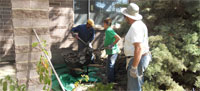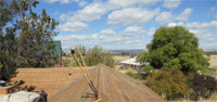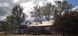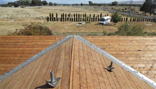 up. Then again, neither did the volunteers! Through wind and dust, the remainder of the roofing came of the building. Beginning with breakfast, continuing to noon, and then on until the early afternoon, everyone stayed at it. Others joined in and by the end of the day nineteen people were bu