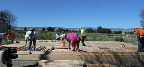 Yesterday a Blitz Build began in White Swan. The goal of the build is to build a home for a family who lost a home in the February 12 fire, in fourteen days. The first day of building a home for another person is always a day of strong feelings. The first day of a blitz build is not different. The excitement of building flows in the air. Yet there is an added dimension. When the homes future family is standing beside you, an emotional-spiritual dimension kicks-in. A dimension that may not be more fully described than to say or feel, “Oh, this is about family.”
