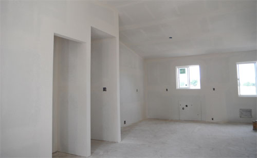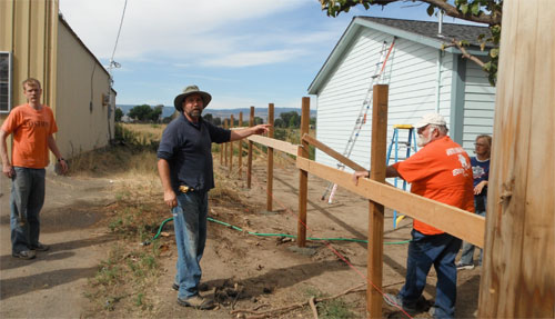 Today is the Blitz Build’s last official day (much more to complete after today—so, if you would like to help during the next week or two, we can put you to work!). A lot of prep was done yesterday for today. From a run to the dump, to cutting trim-work, to texturing the interior walls, to placing posts for a fence, folks were busy. Today finish work begins, and then tonight the first coat of interior paint goes up, with a second coat tomorrow!