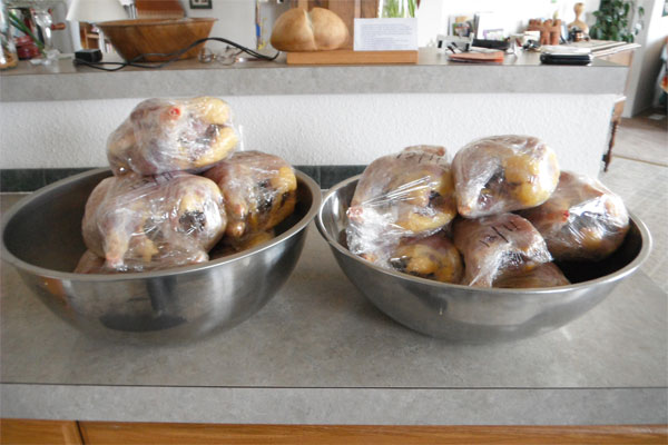 However, there is a problem.  I really, really don’t like killing.  I know the importance of it, in fact more than once I have said all folk who eat meat should go through the killing process at least once.  Maybe not literally kill an animal himself or herself, but be in the same place at the same time when the animal they are going to eat dies.  It is important to know life as sacrament.  It is important to know that no one—vegetarians and vegans included—on this earth is going to eat without causing death.  This is why I, who would do most anything to get out of killing an animal, have come to value one who butchers well.  And we have been lucky when it comes to our large animals.  The Dutch gentleman who arrives at the farm and butchers our large animals has a way about him that the animals act as if they know him and are comfortable in his presence.  One can’t ask for more than that.  However, when it comes to chickens we are on our own and that is why I put the job off for two months.