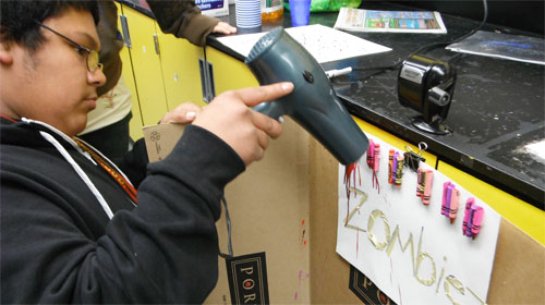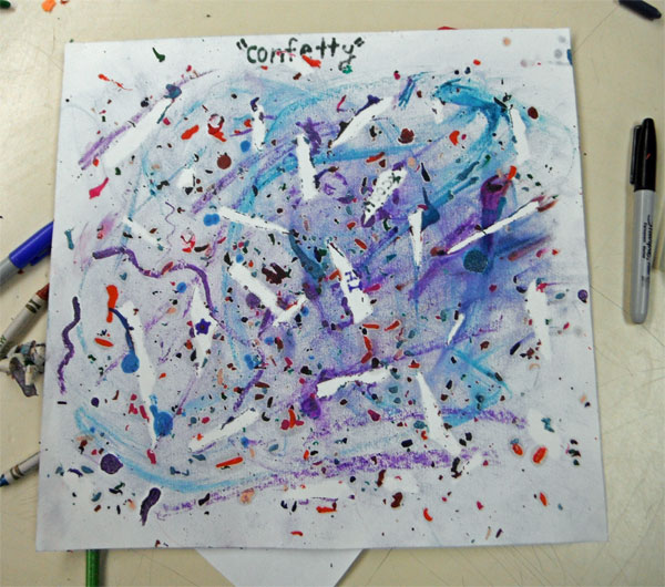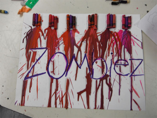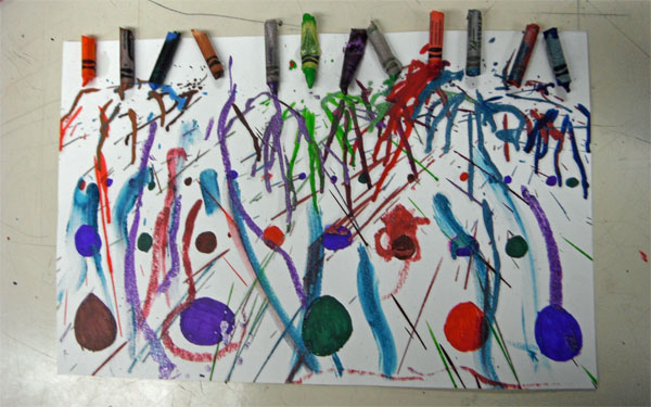 Creations arise from imagination, crayons, paper, and a blow-dryer.