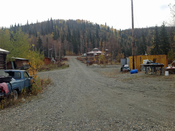 Hughes, Alaska sidles up to the Koyukuk River. The granite river contrasts early snow white overlaying sloping aspen yellows and spruce green.