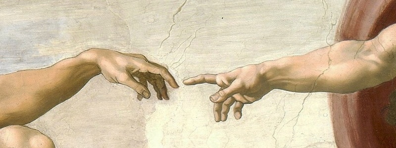 One afternoon, a strand of fog slipped east along the ridge just above a horse trail where half a dozen horses walked in the same direction. The open ridge between horses and fog had me think of the Michaelangelo fresco The Creation of Adam. The energy in the fresco is intense as God and Adam reach to one another. Yet our focus always settles in that moment where fingers are an instant apart. We’re drawn into space between fingers as if it were the fulness of creation. I find it curious how a human hand with simple paint—water and mineral—could create such questioning space of energy and wonder: did they touch just a moment ago, are they about to touch, do they ever touch?